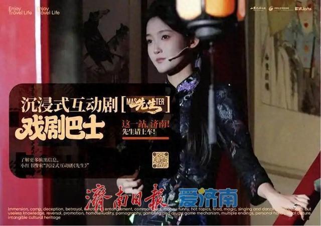 “戏剧巴士”的走红,更源于对本土文化资源的深耕与活化。其剧情并非凭空杜撰,而是以济南爆款沉浸式话剧《先生》为核心,将南丰戏楼中的民国谍战故事浓缩升级,延伸至城市街巷之间。从固定戏楼到流动巴士,从单一场景到全城画卷,这种延伸构建起“一动一静、一点一线”的文化生态,既依托成熟IP的叙事功底与观众基础,又深挖城市公共空间的文化潜能。