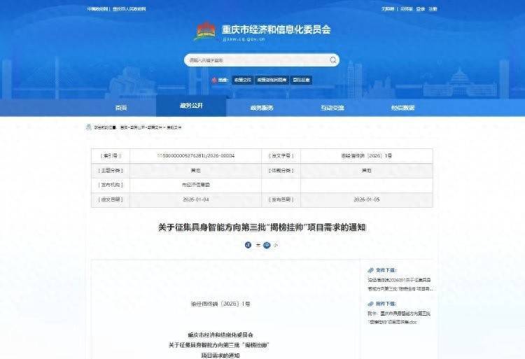 为进一步营造我市具身智能领域科创氛围,1月5日,重庆市经济和信息化委员会发布关于征集具身智能方向第三批“揭榜挂帅”项目需求的通知(以下简称通知)都优配送端都优配送端,围绕生态建设、技术攻关、场景开放三个方面向社会各界公开征集需求。