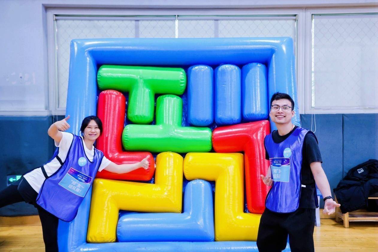 本次趣味运动嘉年华采用“自由体验+拔河晋级”的混合赛制。自由体验环节,包括俄罗斯方块、趣味毛毛虫、合力筑塔、飞盘嘉年华、愤怒的小鸟、迷你高尔夫等等团体项目以及投壶个人项目。拔河晋级赛则贯穿全程,从20进10、10进5,到最终的半决赛、决赛,决出了拔河项目的前三名。